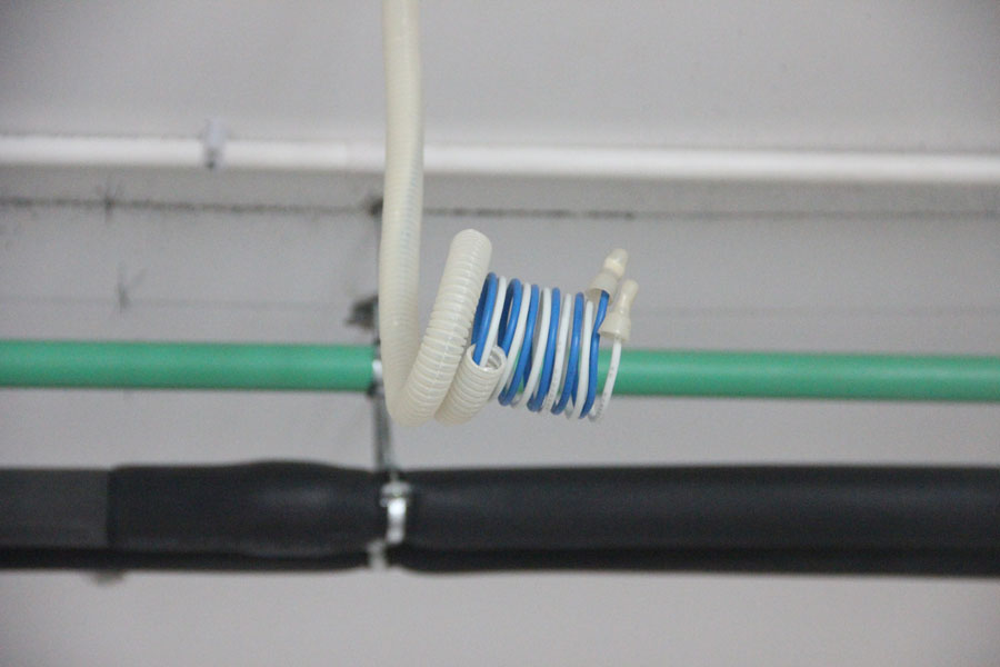 灯头线必须预留50厘米并卷成弹簧状;零火线必须使用压线帽...