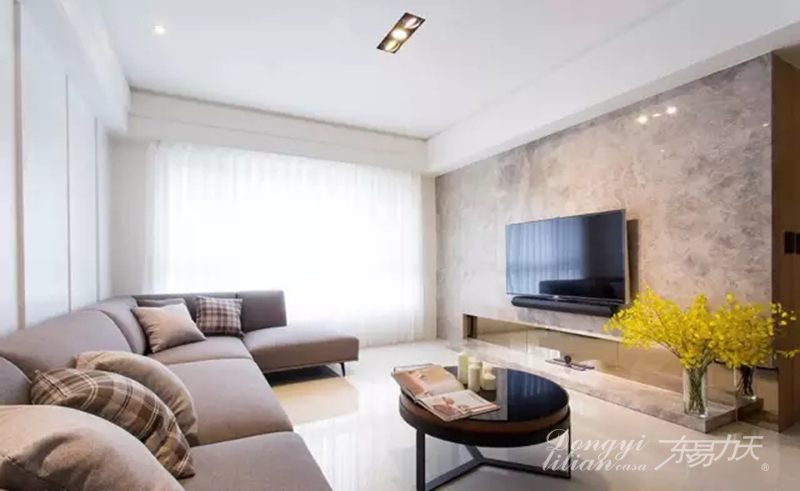 客厅电视墙用大理石铺贴,高级灰的沙发,圆形的矮几,给人一种简约大气的感觉......郑州装修公司【案例赏析】98㎡现代简约,这样的家才是*温暖的!...