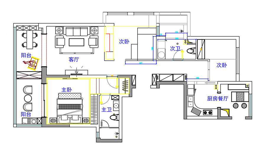 幸福滨水家园C户型装修设计平面效果图