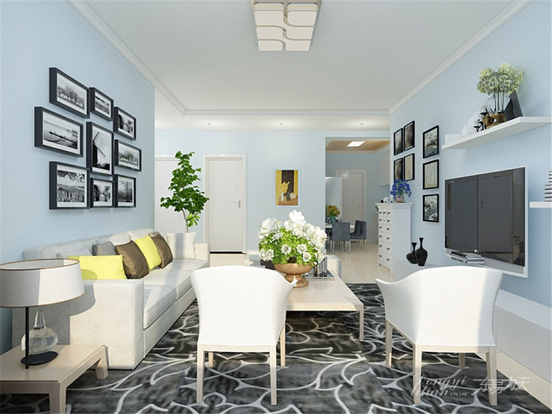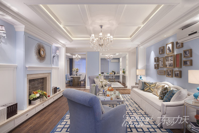 郑州家装公司|118㎡简美风格,展现蓝与白的唯美