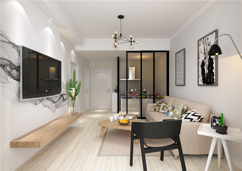 沙发将客餐厅分成两个功能区域,家具配饰简洁的造型、完美的细节,营造出时尚前卫的感觉。郑州装修公司|89㎡现代两居,这才是你想要的家!...