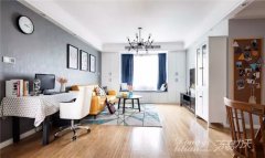 色彩设计以大面积灰色调为背景色,用黄蓝对比色作为主色调提亮整个空间,顶面采用局部边吊的形式,让空间有层次但不显压抑。郑州家装公司【案例赏析】“家”一个我们歇息的港...