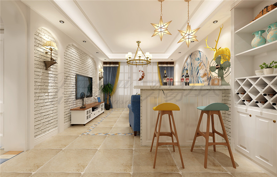 设计师采用吧台隔断,让客厅显得更加宽敞,吃饭的时候也不会感到餐厅很狭小逼仄。